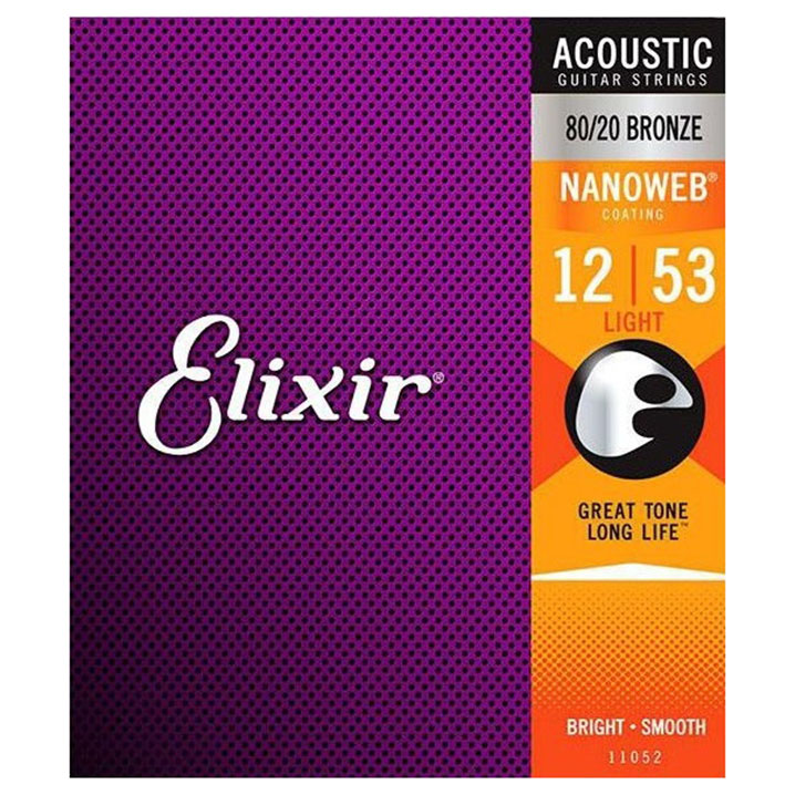 Elixir Acoustic 80/20 Bronze Strings with NANOWEB Coating deliver a bright, lively tone together with extended tone life that players have come to expect from Elixir Strings. Only coated string brand to protect the entire string with an ultra-thin coating, keeping gunk out of the gaps between the windings. Extended Tone Life – players report their tone lasts longer than any other string, uncoated or coated. Consistent performance and tone – ready to play whenever you are. Smooth feel that is easy on your fingers and enhances playability. Reduced finger squeak – good for both performance and recording. Anti-Rust Plated Plain Steel Strings resist tone-deadening corrosion, ensuring a longer life for entire set. With less hassle and expense of frequent strings changes, spend more time making music.