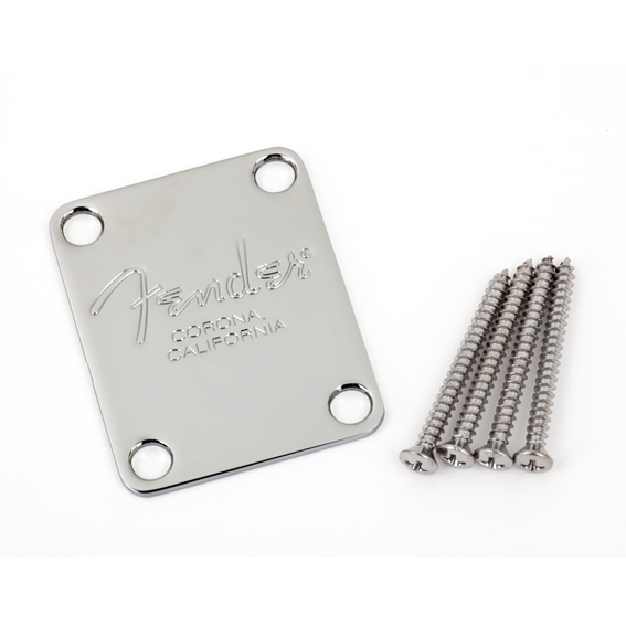 Chrome neck plate reads "Fender® Corona California". No-Serial Number. Includes four mounting screws.