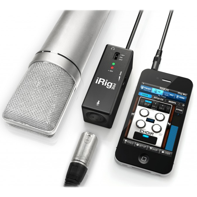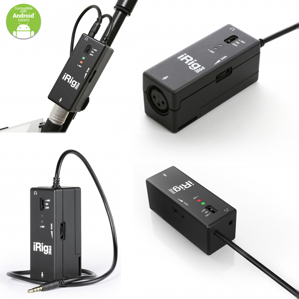 iRig Pre is a professional sounding, studio quality mic preamp/interface for iPhone/iPod touch/iPad and Android devices. Take your microphone and plug it into your iOS device. Plug the iRig Pre into the headphone jack of your iOS device, activate phantom power if necessary, launch your recording software and wail away. The iRig PRE sports an ultra-compact design so it fits pretty much anywhere. Just slightly larger than a 9 volt battery, you'll be amazed at how quickly you'll misplace your iRig PRE. The iRig Mic Pre features a 3.5mm headphone out that allows you to monitor the processed sound. In addition, you can download from the App Store two free apps to get started recording and "effectualizing" your voice: iRig Recorder FREE, a simple-to-use waveform recorder and editor, and VocaLive FREE, our premium live vocal effects processor. iRig PRE is fully compatible with Android devices, so now you can use your high quality studio and stage mics to record fabulous audio on your tablet or phone. And with iRig Recorder FREE for Android you can capture your musical ideas, performances, rehearsals, etc., with pristine audio quality. Simply plug your iRig PRE into your headphone/input jack on your device, launch your favorite recording, vocal or playing app, and hit record. Now you can finally get studio quality audio on your Android device. Package includes: iRig Pre, 9V Battery, Velcro Strip