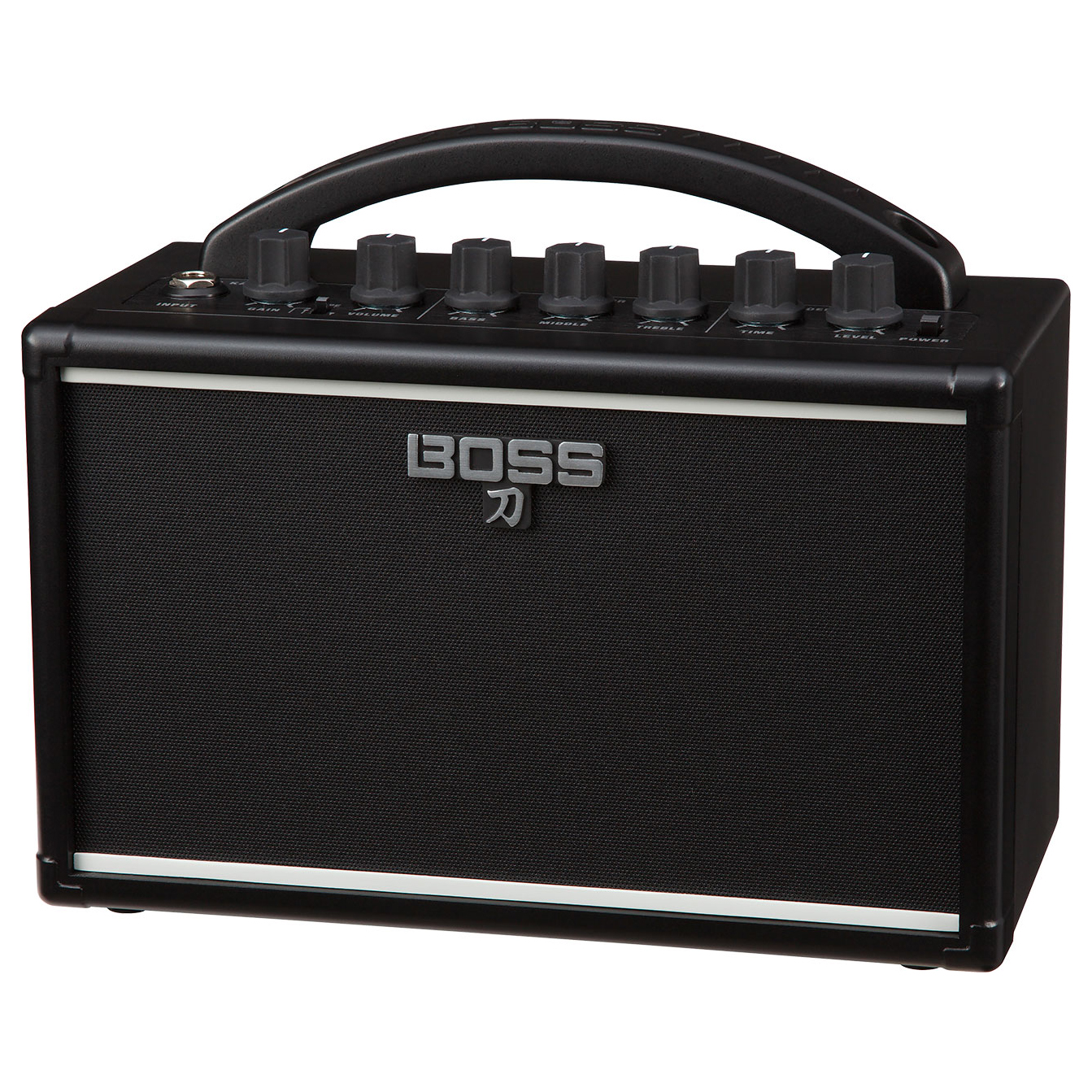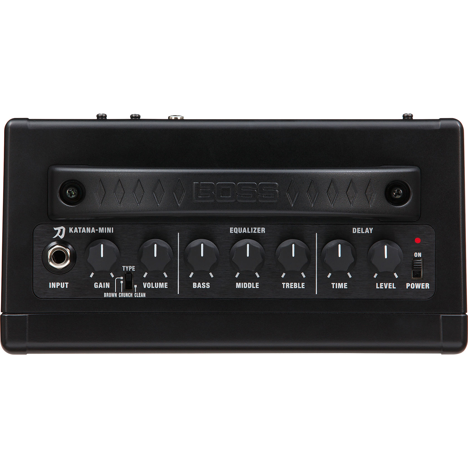 Serious Rock DNA Forged Into a Compact, Battery-Powered Amp. BOSS Katana amps have received accolades from guitarists everywhere for their fantastic sound and feel, onboard effects, and great value. Now, the Katana-Mini makes serious Katana tone accessible in a small, go-anywhere amp that runs on batteries. Offering sound quality that far exceeds other amps in its class, this miniature powerhouse features an authentic multi-stage analog gain circuit for big, expressive sound, plus a traditional analog EQ and an onboard tape-style delay. Ultra-compact and travel-ready, the Katana-Mini delivers inspiring Katana tone anywhere you want to play.