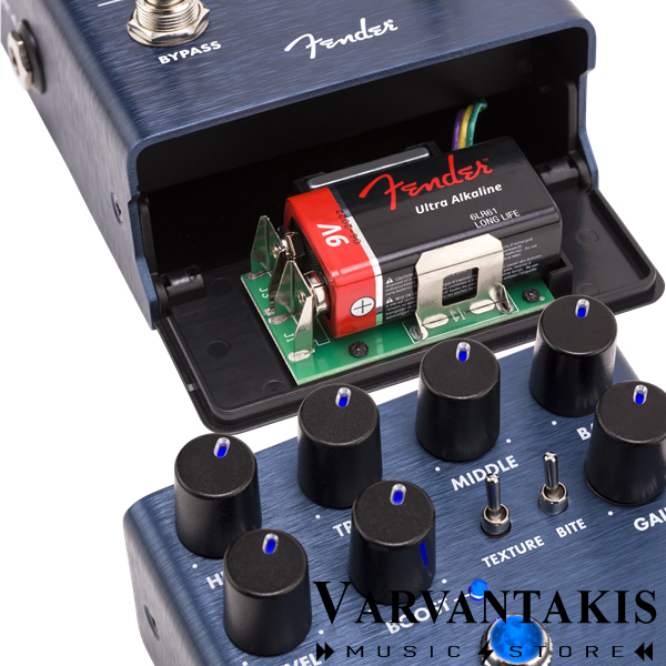 Fender even made swapping batteries quicker and easier with our exclusive “patent applied for,” magnetically latched 9V battery door.
