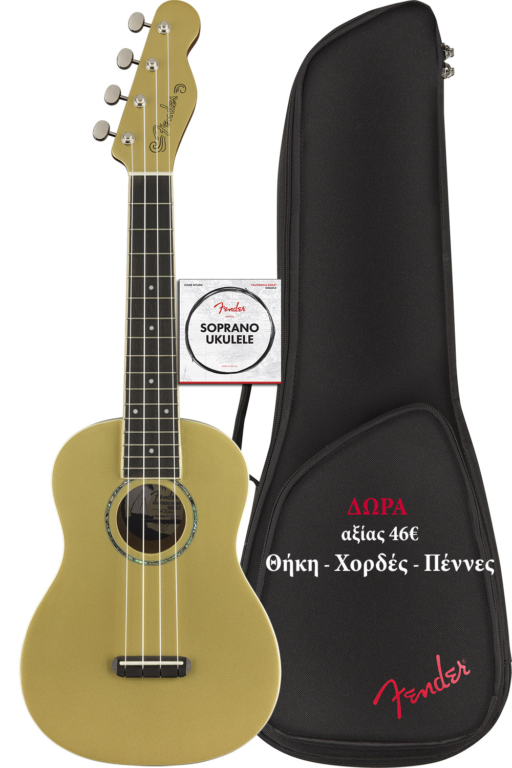 Sporting a gloss finish, a painted top and headstock with natural sides and back,' this uke pays homage to Fender tradition.