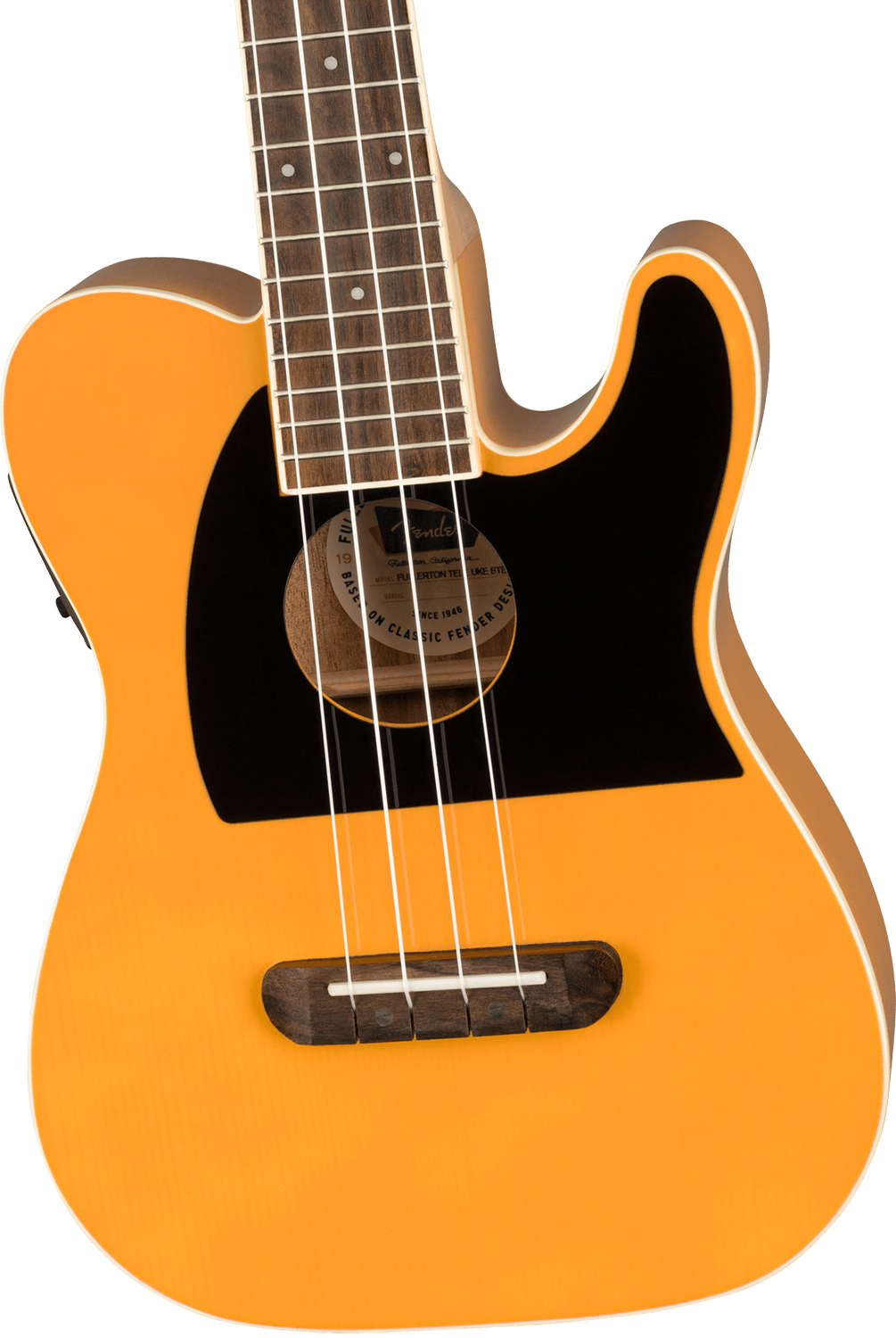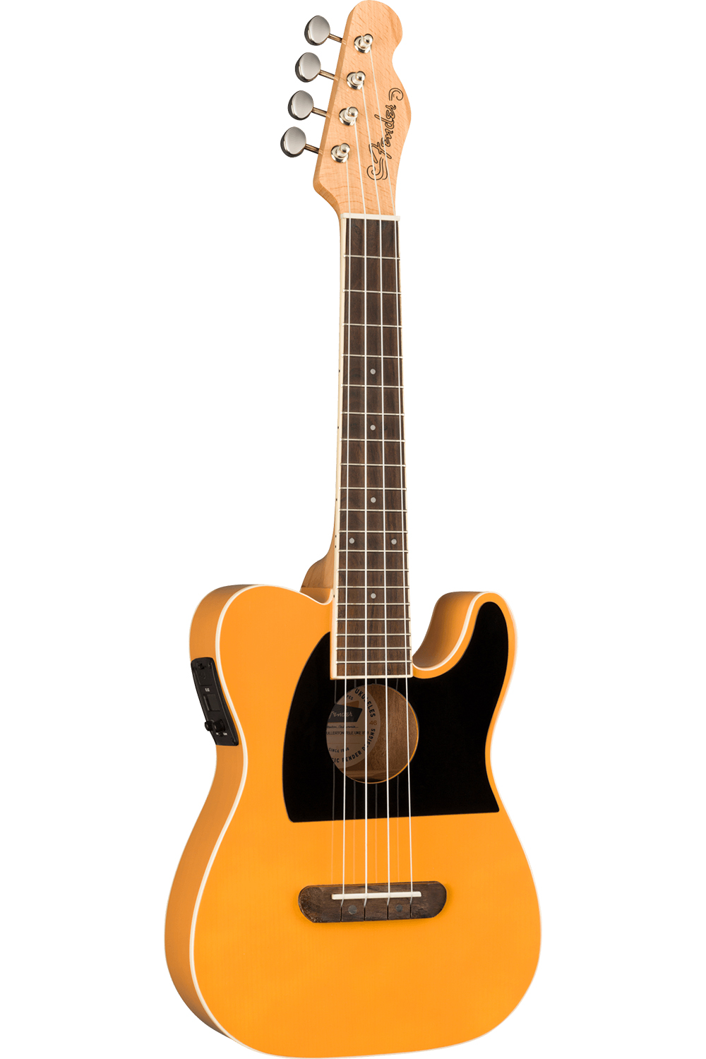 Tipping the hat to Fender’s iconic guitar body shapes, the Fullerton Series ukuleles are nothing short of electric. The Fullerton Telecaster departs from traditional ukulele construction and aesthetics, while remaining faithful to Fender’s history. The Telecaster ukulele’s pickguard, signature finish color options, and 4-in-line headstock can only be categorized as quintessentially Fender. The Fullerton Telecaster is the perfect choice for the ukulele player looking to inject the spirit of rock ’n roll into every performance.