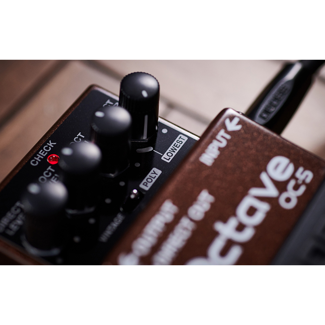 The OC-5 also features an evolved version of the smart Poly mode first introduced with the OC-3 Super Octave, letting you play full chords with octave effects.