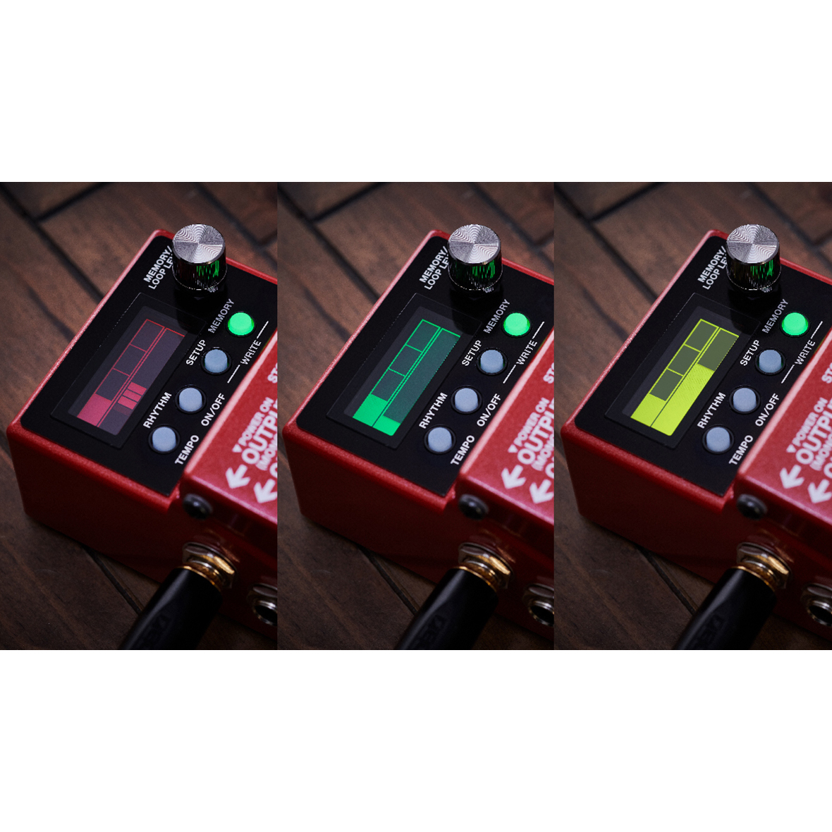 The RC-5 features the most advanced interface available in any compact looper pedal. The LCD lets you keep an eye on loop status as you perform, with a backlight that changes color to indicate recording, overdub, and playback states. And coupled with the multi-function parameter knob, it’s quick and easy to navigate rhythms, kits, system settings, and more in the heat of the moment.