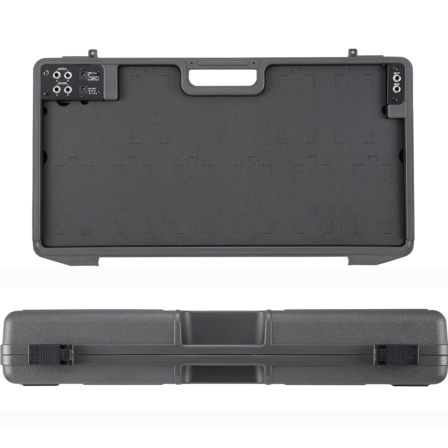 A high-density foam insert comes pre-scored for nine standard BOSS stomps, but can be cut for nearly any pedal size with a common utility knife.