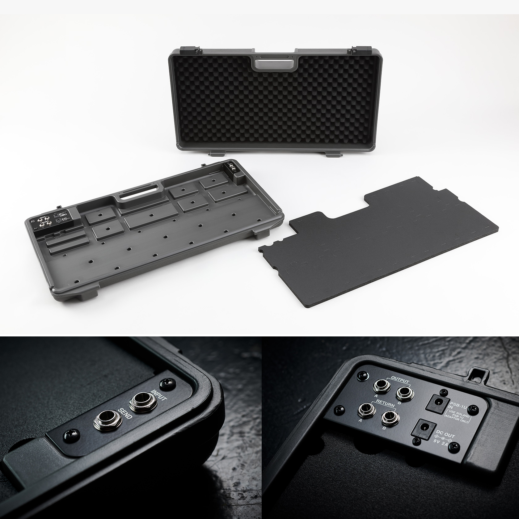 The insert holds your pedals securely in place during transport and performance, and there’s space underneath to hide DC and long audio cables for a neat, clean look.