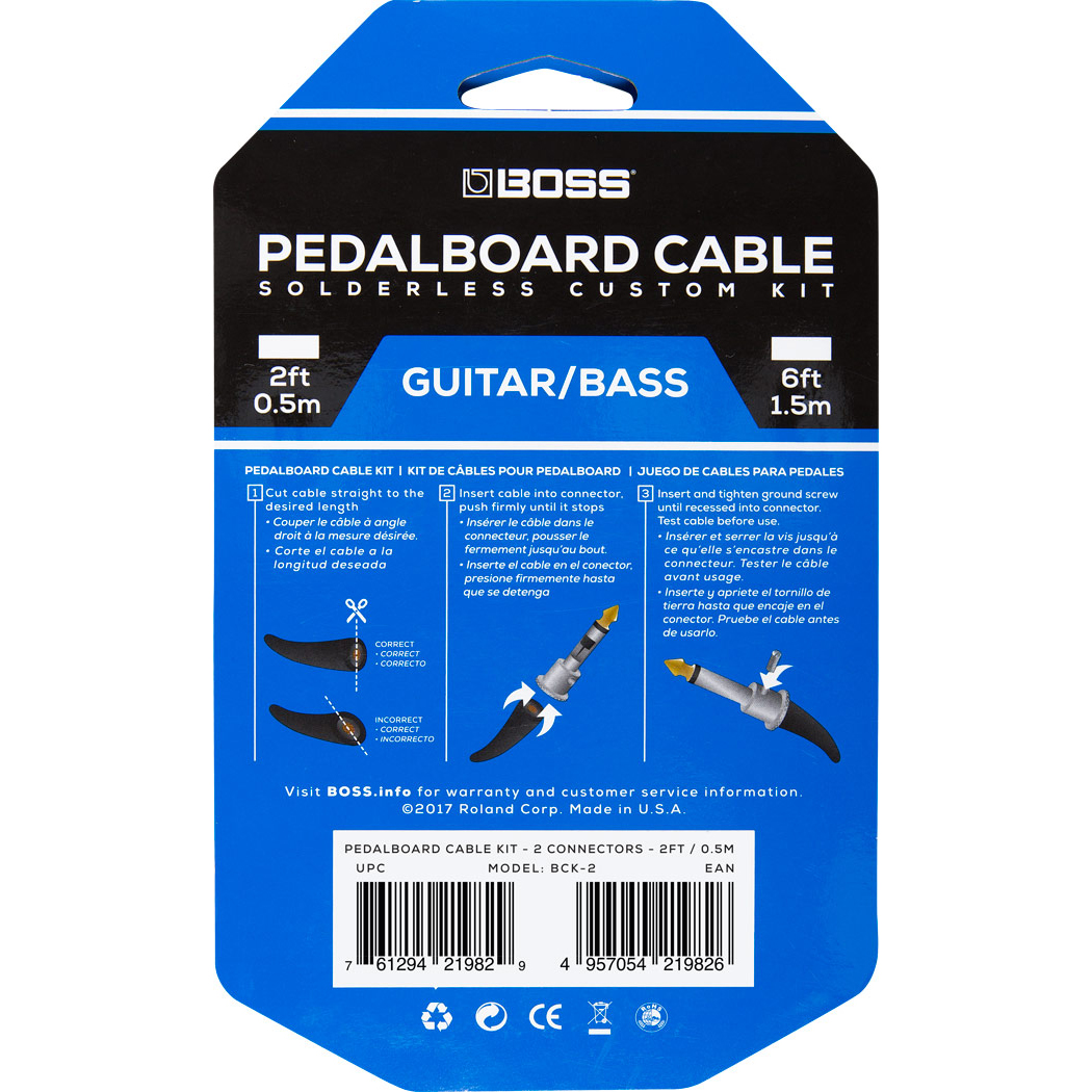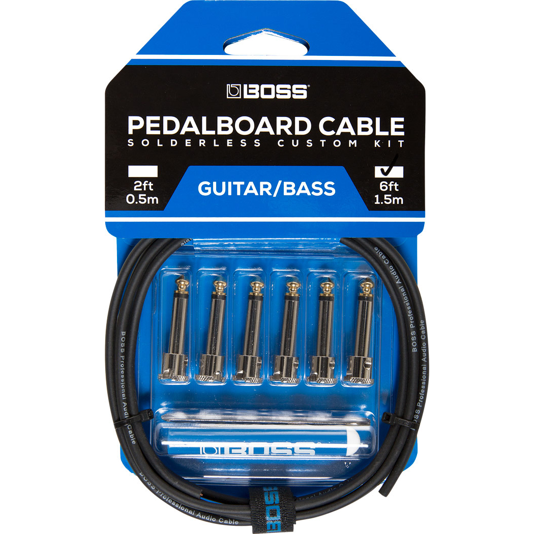 The BOSS Solderless Pedalboard Cable Kit is designed to save space on your pedalboard without sacrificing tone.