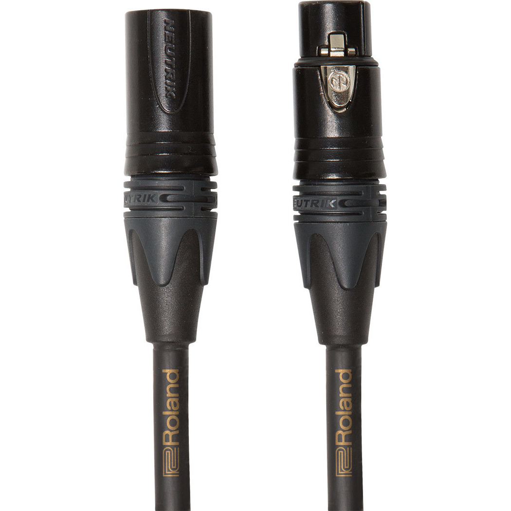 Roland Gold Series microphone cables feature 24k gold plated Neutrik connectors, high density spiral shielding and low capacitance.
