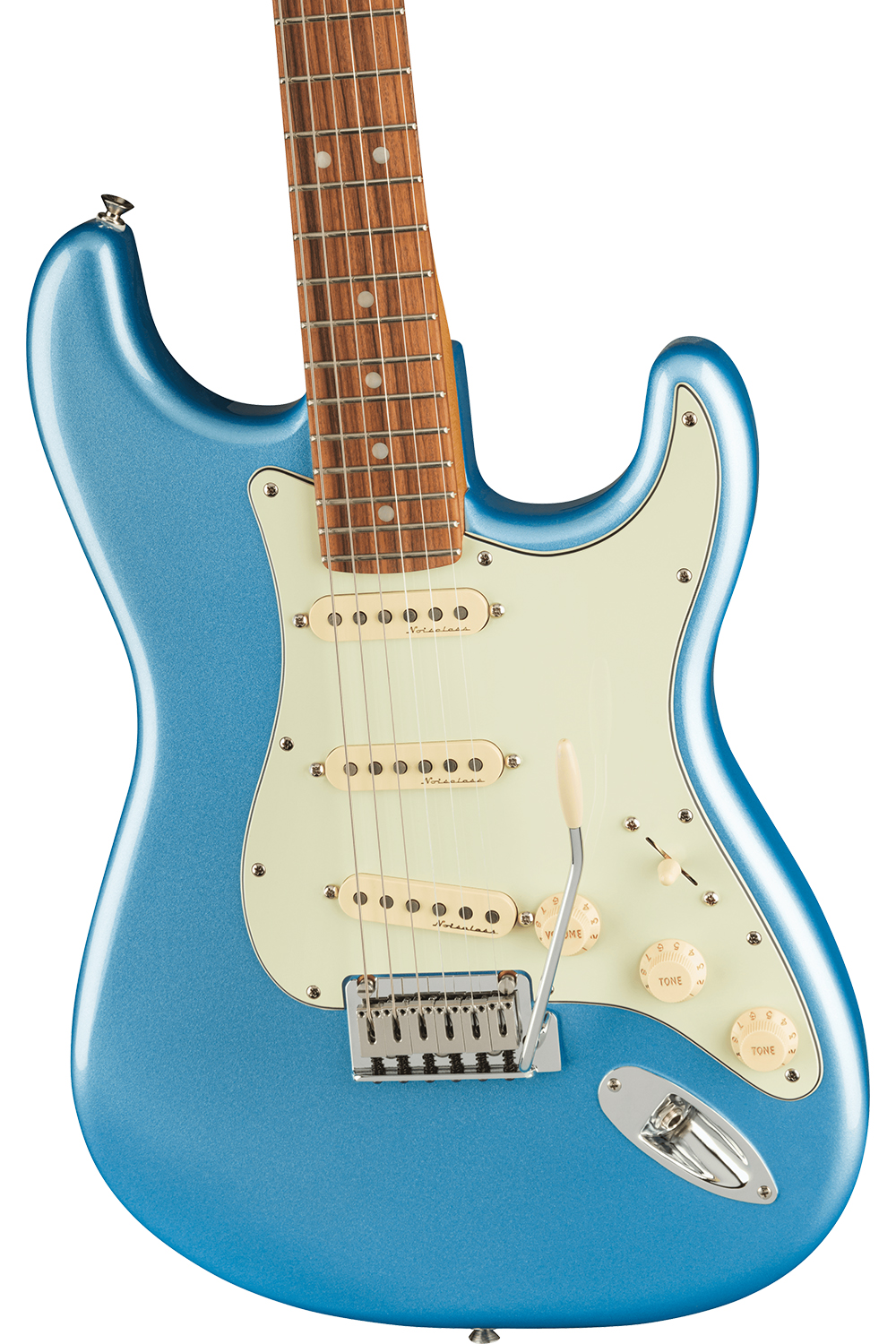 • Fingerboard: Pau Ferro, 12" Radius, 22 Medium Jumbo Frets, White Pearloid Dot Position Inlays