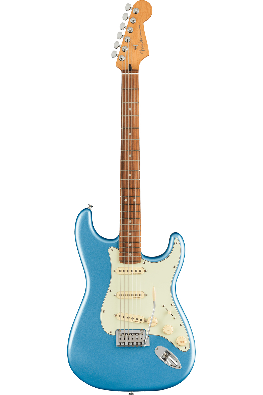 Fusing classic Fender design with player-centric features and exciting new finishes, the Player Plus Stratocaster delivers superb playability and unmistakable style. At the heart of this Strat is a trio of Player Plus Noiseless pickups – bright and touch sensitive, they offer classic Strat tone without hum. A push-pull pot on the tone control adds the neck pickup to switch positions 1 and 2 for two sounds not usually found on a Strat. The silky satin Modern "C" Player Plus Strat neck fits your hand like a glove, with smooth rolled edges for supreme comfort. The 12" radius fingerboard and 22 medium jumbo frets facilitate fluid leads and choke free bends. Smooth and responsive, the 2-point tremolo provides classic vibrato effects, while the locking tuners provide rock-solid tuning and make string changes quick and easy. With classic Fender style, advanced features and stunning new finishes, the Player Plus Stratocaster is the perfect tool to spark your creativity and stand out from the crowd.