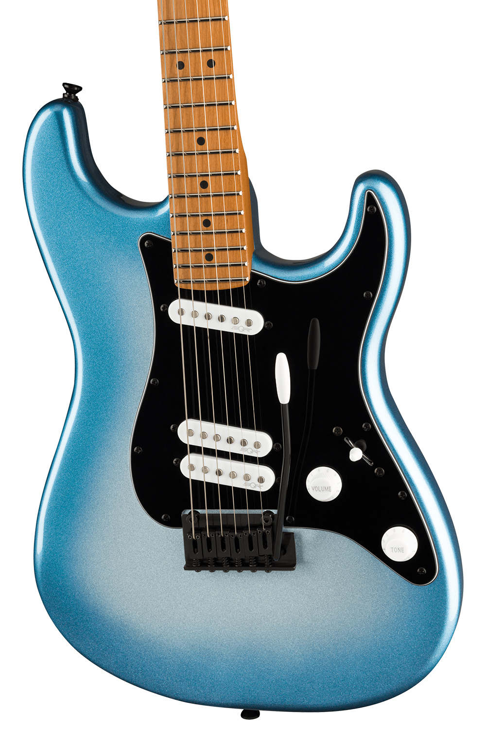 The Squier Contemporary Stratocaster Special brings modern features and bold aesthetics to an iconic Fender platform to satisfy today's most discerning and daring players. At the heart of this guitar is a set of Squier SQR alnico single-coil pickups positioned in a "special" configuration with the middle pickup near the bridge pickup for a unique variety of dynamically responsive settings. The roasted maple neck was chosen for its optimal tone and stability, and a sculpted heel design allows for improved access all the way to the 22nd fret. High-performance components round out the feature list and include a 2-point tremolo bridge for superior feel during bends, and a set of sealed-gear tuning machines with split shafts for smooth tuning action and easy restringing. Eye-catching styling cues include stealthy black hardware and a sleek painted headstock with chrome logos for a premium look.