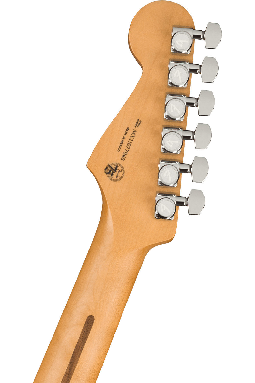 Fusing classic Fender design with player-centric features and exciting new finishes, the Player Plus Stratocaster delivers superb playability and unmistakable style. At the heart of this Strat is a trio of Player Plus Noiseless pickups - bright and touch sensitive, they offer classic Strat tone without hum. A push-pull pot on the tone control adds the neck pickup to switch positions 1 and 2 for two sounds not usually found on a Strat. The silky satin Modern "C" Player Plus Strat neck fits your hand like a glove, with smooth rolled edges for supreme comfort. The 12" radius fingerboard and 22 medium jumbo frets facilitate fluid leads and choke free bends. Smooth and responsive, the 2-point tremolo provides classic vibrato effects, while the locking tuners provide rock-solid tuning and make string changes quick and easy. With classic Fender style, advanced features and stunning new finishes, the Player Plus Stratocaster is the perfect tool to spark your creativity and stand out from the crowd.