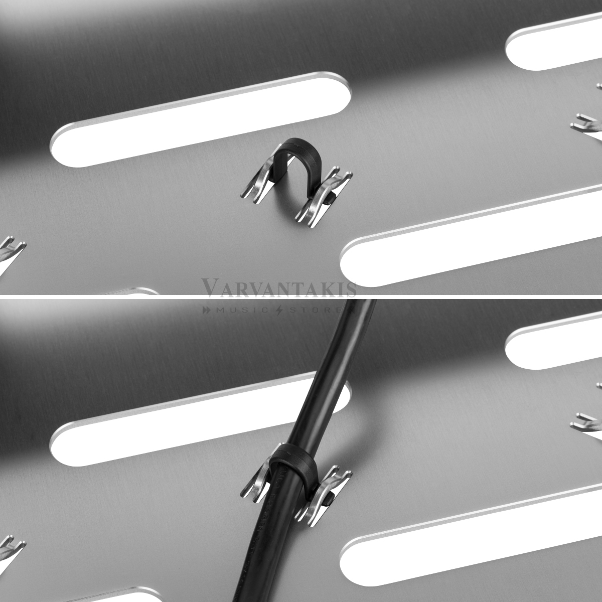 • Integrated Cable Routing and Management System:Setup and cable management is made easy with the integrated routing channels and included zip-ties and cable clips, and you can use almost any pedal power-supply under your Professional pedal board with Fender's universal clamp mounting system.