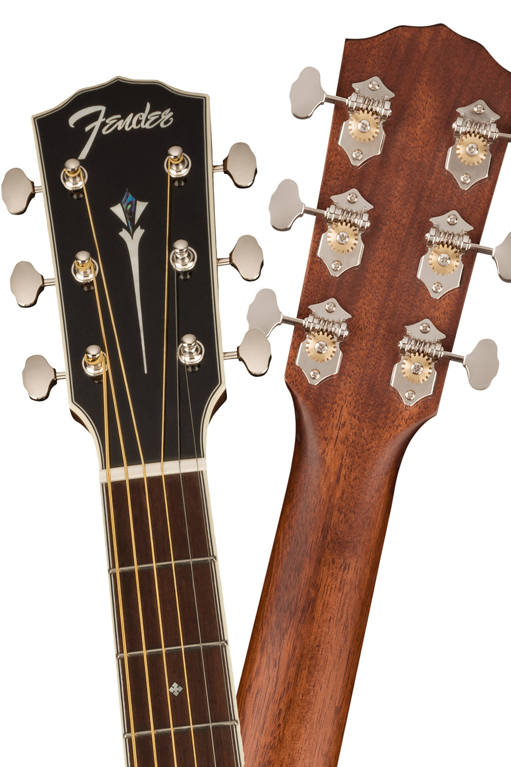 A Fender and Fishman-designed pickup amplifies the tight, articulate tone of the PS-220E’s newly designed parlor body shape, while the soundhole-mounted controls preserve the vintage aesthetics.