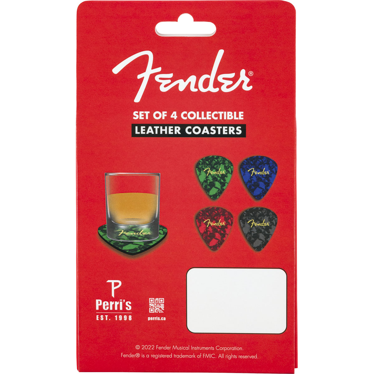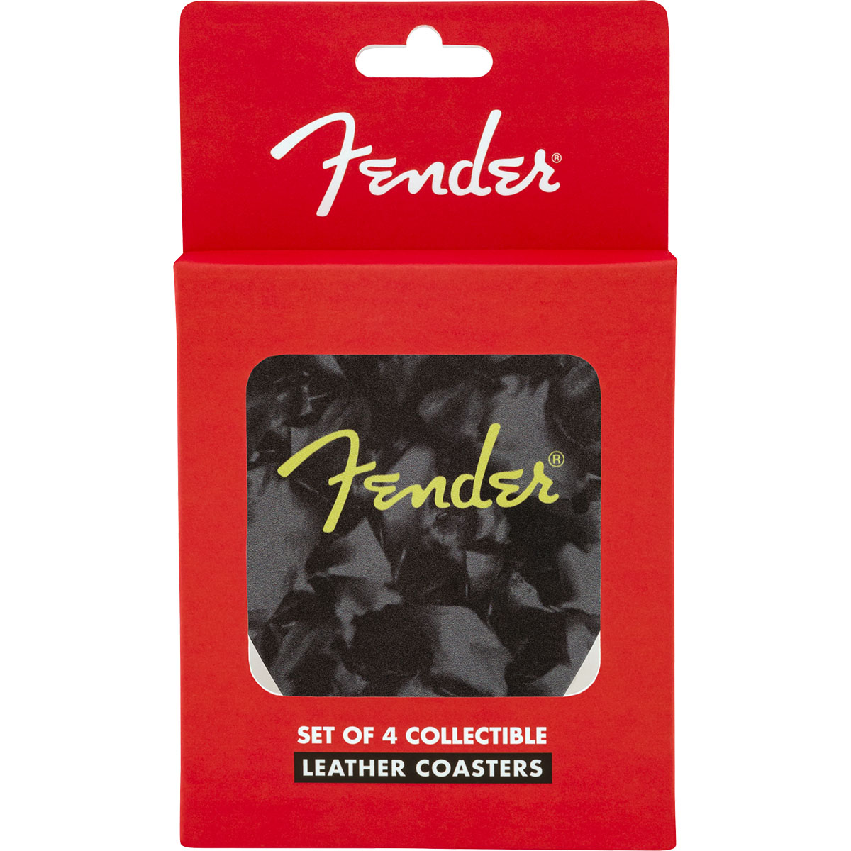 Your beverage will never be happier sitting on Fender leather pick coasters.