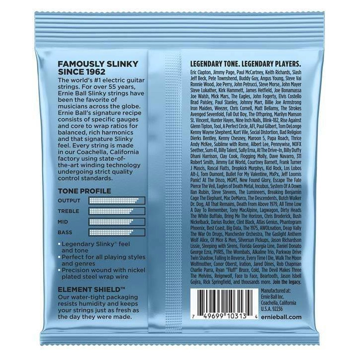 Ernie Ball Nickel Wound Electric Guitar Strings are made from nickel plated steel wire wrapped around tin plated hex shaped steel core wire. The plain strings are made of specially tempered tin plated high carbon steel producing a well balanced tone for your guitar.