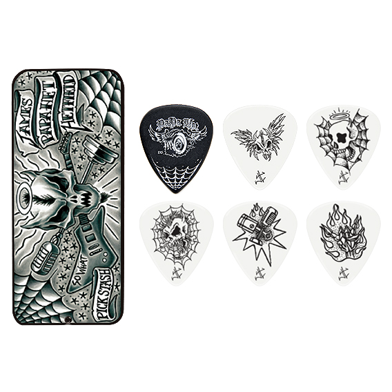 James Hetfield Signature Picks JPH01T088. Tin and pick art designed by Hetfield. Gauge: .88MM.