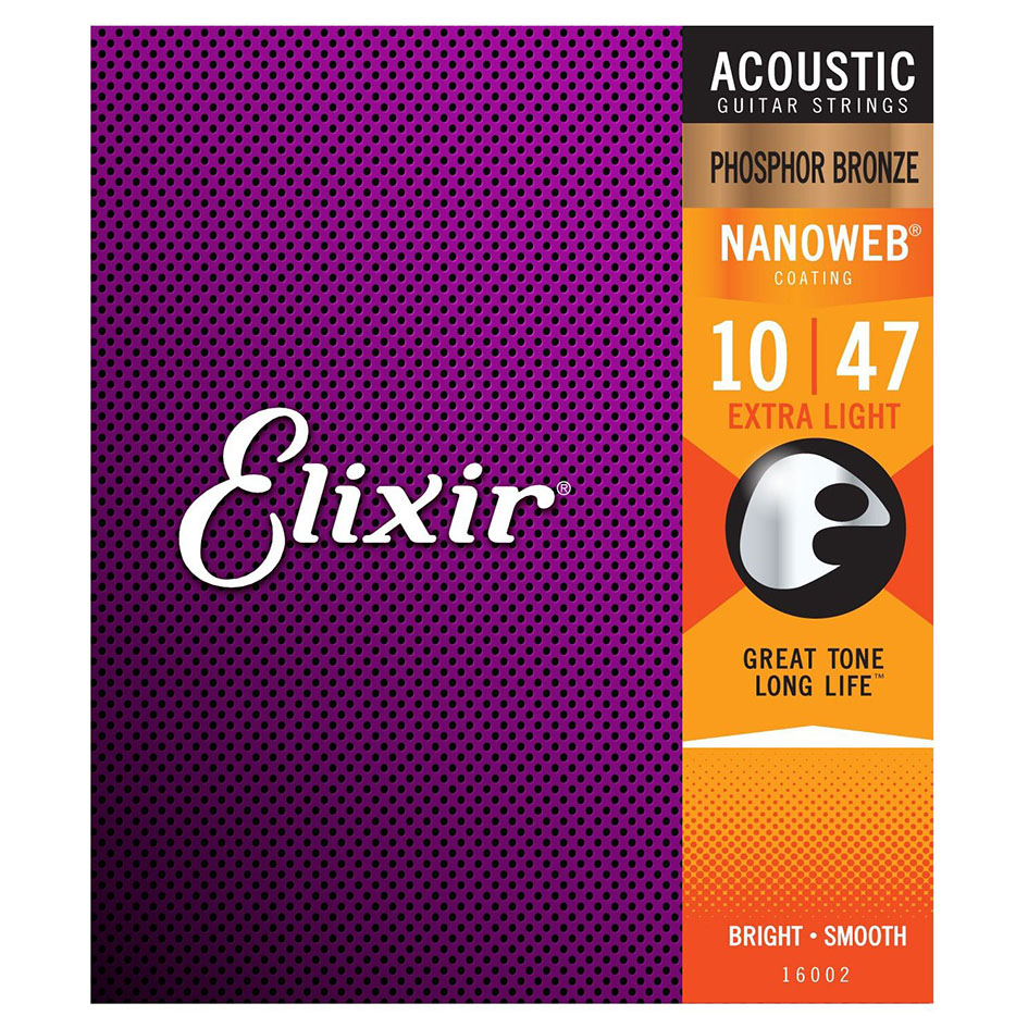 ELIXIR 16002 PH.BRONZE NANOWEB ACOUSTIC GUITAR STRINGS 10-47
