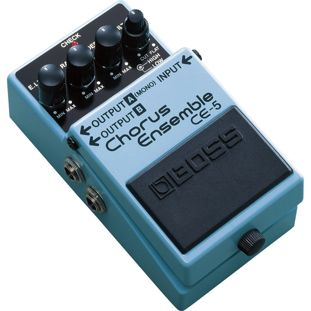 The CE-5 Chorus Ensemble is BOSS' ultimate compact chorus pedal, covering a wide frequency range and featuring high- and low-cut filters. This lets users create any kind of chorus effect-from a mild, natural chorus to the clear and penetrating stereo chorus effect popular in contemporary music.