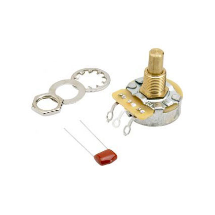 Top-quality potentiometers used on U.S. Fender instruments. The 500K is usually associated with most guitars equipped with a humbucking pickup. Fits nearly all Fender instruments (U.S. and Mexico) requiring a solid-shaft potentiometer.