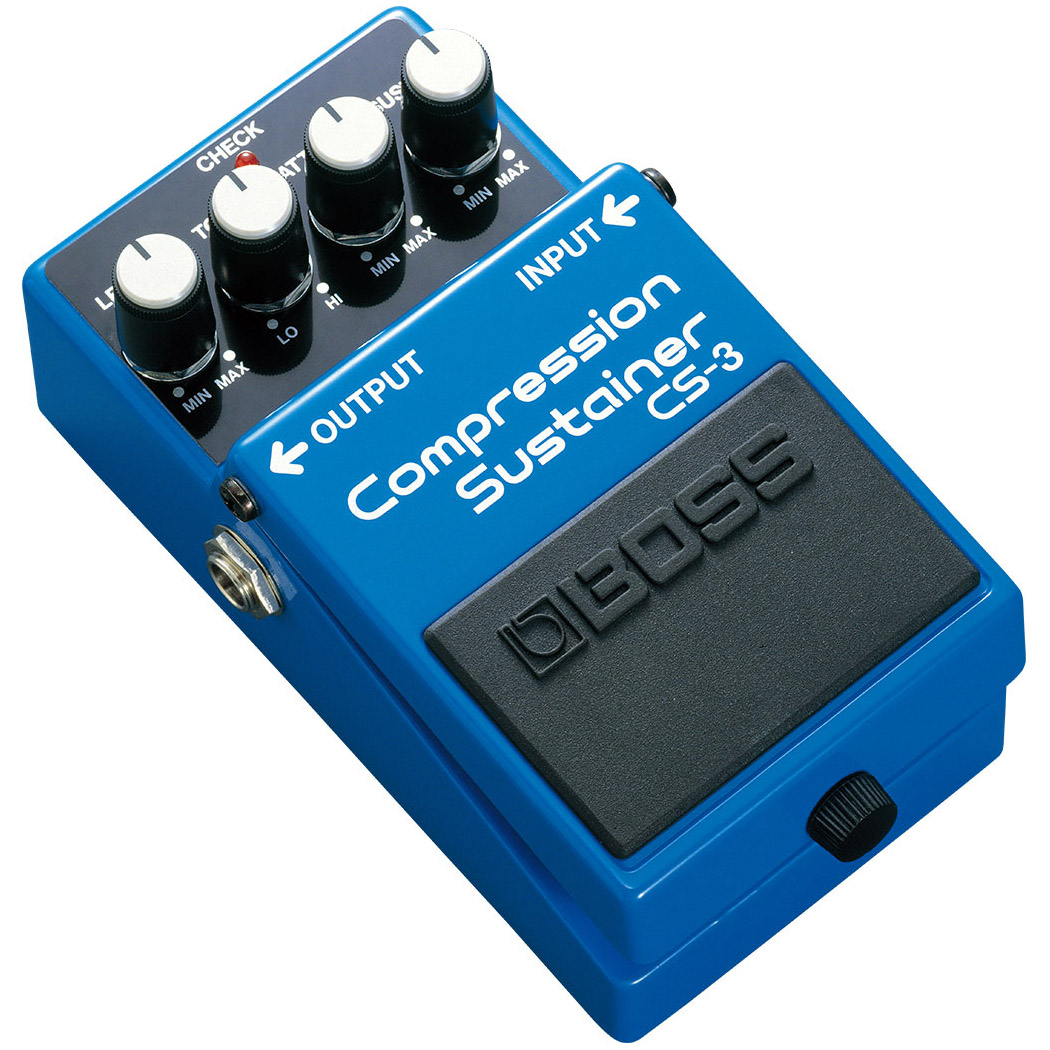 The CS-3 Compression Sustainer pedal compresses louder signals while boosting lower signals, providing smooth sustain without degrading the original sound quality.