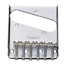 Chrome-plated steel bridge with six fully adjustable nickel-plated barrel saddles for string-through-body Telecaster®. Mounting hardware included.