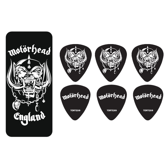 These pick tins contain six .88 Tortex Picks featuring Motörhead's classic Warpig branding.