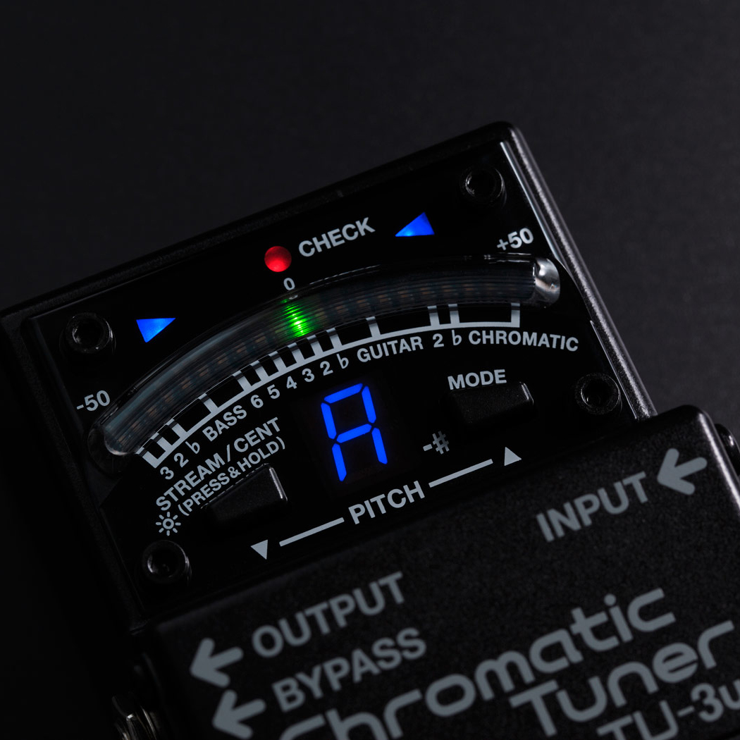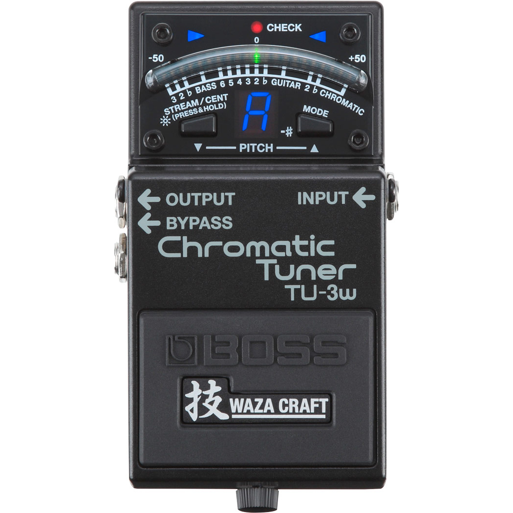 With the TU-3W, BOSS brings Waza Craft mojo to the world?s leading stompbox tuner. At its core, the TU-3W provides rock-solid tuning equivalent to the industry-standard TU-3. In true Waza tradition, the pedal?s benchmark functionality is further enhanced with BOSS skill and craftsmanship. Pure, uncolored signal transfer is essential for a tuner, and the TU-3W features redesigned circuitry with selectable buffered or true-bypass operation and the most transparent audio pass-through possible. Packing high-end performance for discriminating players, the TU-3W delivers a premium pedal experience only available from BOSS.
