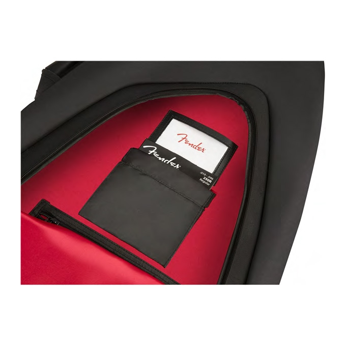 Fender's F610 Series gig bag is a stylish and affordable way to keep your electric, bass, or dreadnought acoustic guitar safe while traveling. Featuring our iconic asymmetrical Fender shape, its durable outer layer is constructed of tough 600 Denier polyester that protects against impacts while avoiding ripping and tearing. Its interior is filled with 10mm padding and lined with soft touch microfiber that keeps your instrument secure while preventing potential finish damage. The F610 gig bag also comes with a comfortable two-piece handle and ergonomic air mesh backpack straps with easily adjustable ladder lock buckles, so you can comfortably carry your instrument without unnecessary physical strain. Plus, the front storage pocket offers additional storage space for small accessories and a business card window.